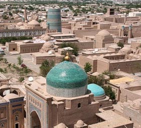 Хива — осори атиқа шаҳри. Хивада кўп тарихий ёдгорликлар бор. Йўловчи ҳали шаҳарга етмасдан беш-олти километрлик масофадан осмонпайванд миноралар, ложувард гумбазлар намоён бўлади. Булар ичида энг муҳташами «Ҳазрат Паҳлавон» мақбарасидир. Биз ана шу кўркам мақбарага кирдик. Мақбара гумбази атрофига форс-тожик тилида бадиий баркамол фалсафий рубоийлар нақш қилиб, ўйиб ёзилган.